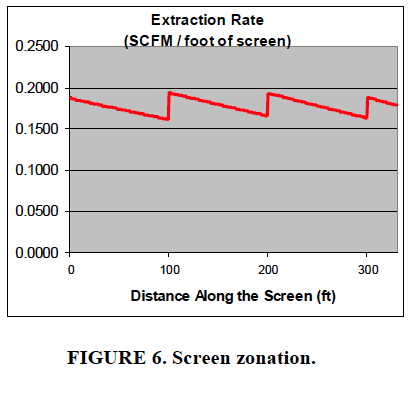 end of a well screen, which is the point furthest away from the source or blower. This is referred to as zoning the screen. Open area zones are designed so that the average injection or extraction rate is constant among the zones, as illustrated in Figure 6 for a soil vapor extraction well.