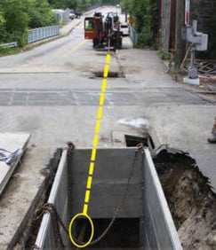 Another Directional Technologies project site shows two separate views of how the underground utilities were installed under the railroad tracks in Norwich, CT.